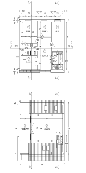 Fachwerkhaus restauriert + DG Ausbau Beim altem Fachwerkhaus wurde teilweise das innenliegende Fachwerk freigelegt. Die niedrigen Deckenhöhen sind durch Bodenabsenkung und Balkenanhebung erheblich vergrössert worden. Das DG über dem Fachwerkhaus und dem Nebengebäude wurde zu Wohnraum ausgebaut.